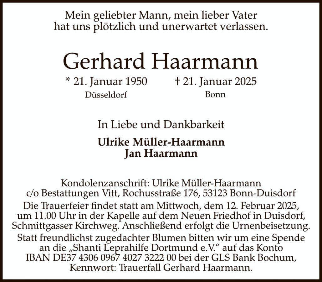 Gerhard Haarmanngestorben am 21. Januar 2025