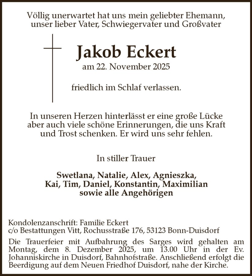 Wir nahmen heute Abschied von Dir lieber Jakob, ruhe in Frieden!